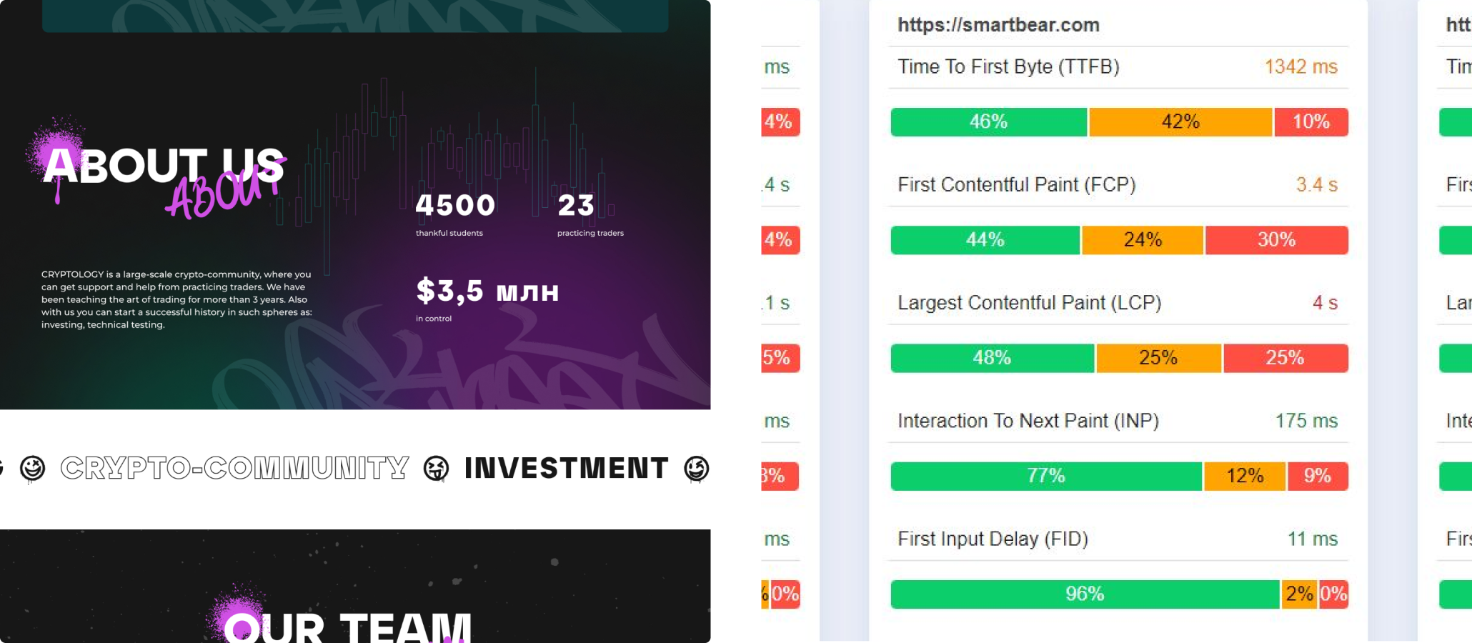 Measures the loading performance of the content. To ensure user experience, the LCP should be within 2.5 seconds of the page loading time.