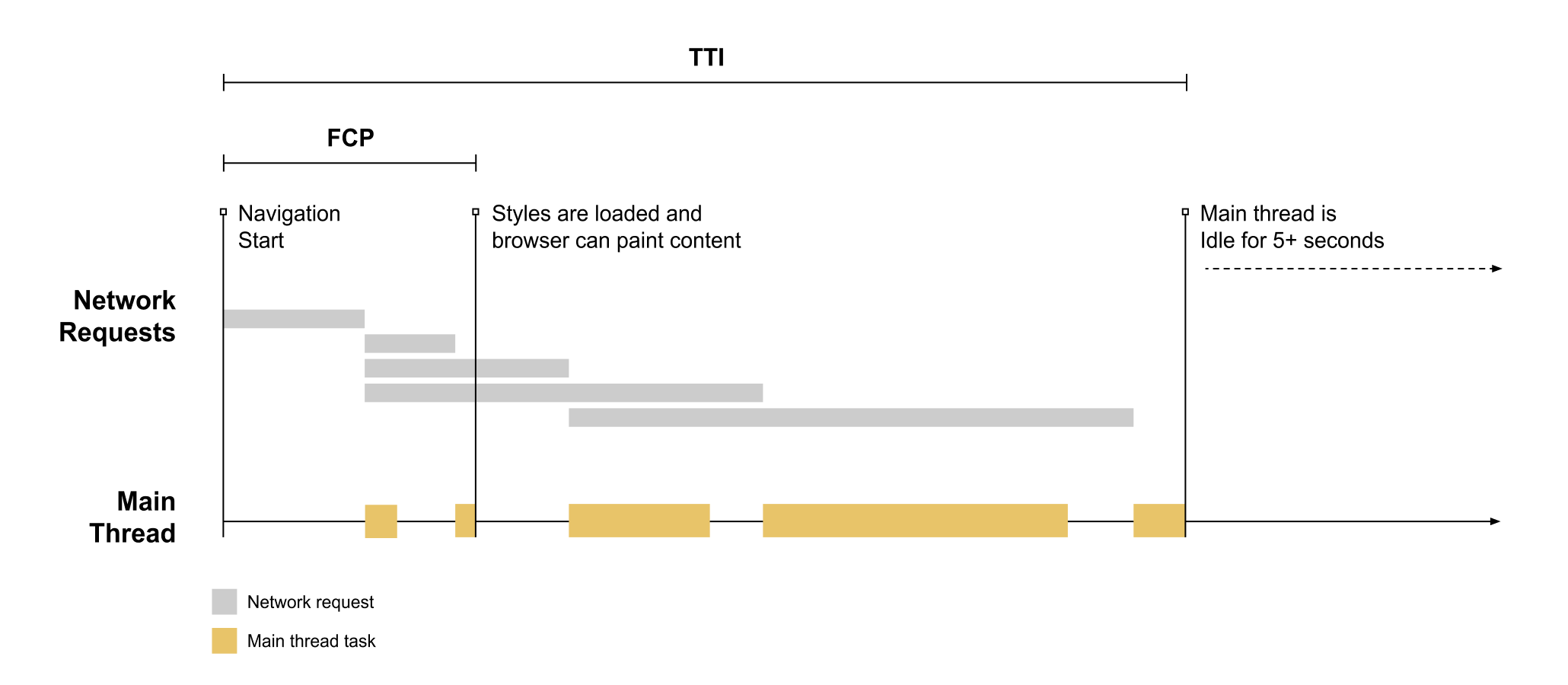 Similarly, metrics such as Total Blocking Time (TBT) : Total Blocking Time and Time to Interactive (TTI) : Time to Interactivity, are extremely important lab metrics for identifying and diagnosing potential interactivity issues that could affect FID. However, they are not part of the Core Web Vitals suite because they are not measurable in the field and do not reflect user-centric results.